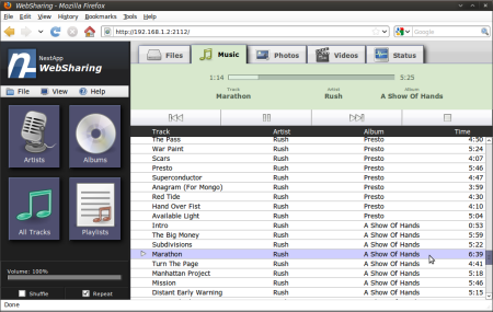 WebSharing también permite compartir archivos por red móvil. Adjunto algunas capturas tanto de android como de firefox y chrome para que veais a que me refiero. ![]() ![]() ![]() La version Free no permite archivos multimedia. La version full vale 2.14 € Adjunto la version full para los que tenéis problemas con el market y esas cosas... Funciona correctamente http://db.tt/BMWfZ39 http://www.mediafire.com/?xzsfz58oh896ur4 - (se han reportado algunos problemas con este enlace, a veces baja un archivo .txt, volvedlo a bajar, o utilizad el enlace a dropbox o el código QR) Última edición por gerno Día 04/03/11 a las 14:06:51. |