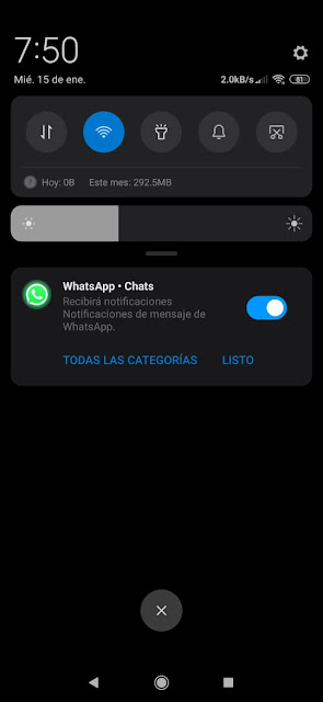 Un ejemplo mas claro, digamos que te aparece la notificación de seguridad indicando que whatsapp esta usando la cámara, mantienes presionado sobre ella y saldrá algo parecido a esto.