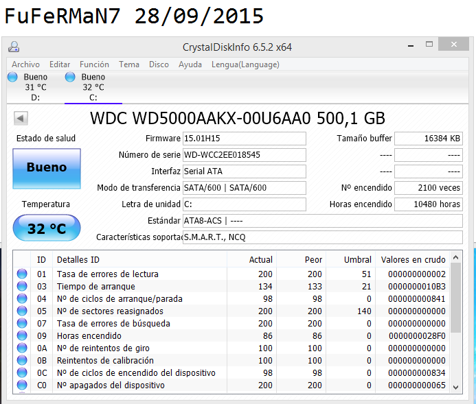 Nunca había usado CrystalDisk, y a la persona a la que le vendí un disco duro (inicialmente tenía 2 en venta), con eso le valió Actualizado! |