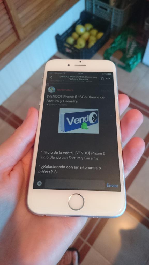 ![]() Sobre el post del foro * Título de la venta: [VENDO] iPhone 6 16Gb Blanco con Factura y Garantía * ¿Relacionado con smartphones o tablets?: Sí Sobre el producto * Marca: Apple * Modelo: iPhone 6 16Gb * Precio: VENDIDO * Si vendes un teléfono, ¿es libre o de operadora?: Libre de fábrica * ¿Producto nuevo o de segunda mano?: Con uso, de segunda mano * ¿Desperfectos?: Impecable. Muy cuidado * Estado del producto (de 1 a 10): 9 * Tiempo de uso del producto: 8 meses Sobre el método de pago * Ubicación: Málaga * Método de pago admitido por el vendedor: