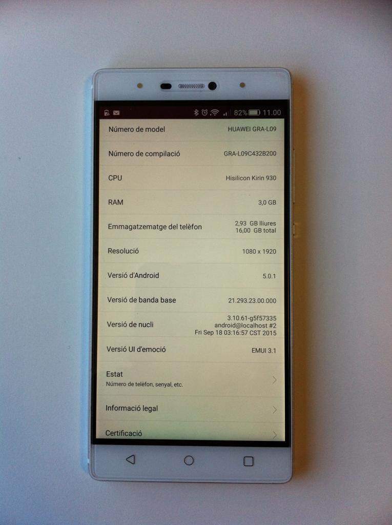 * Sobre el envío: Nacex 24h * ¿Dispones de factura?: Sí * Fecha de la factura: 09.10.2015 * ¿El producto está en garantía?: Sí Otros datos de interés * Descripción general y otros comentarios: Embalaje original, adhesivos, cable, cargador, auriculares, todo nuevo. Entrego con protector Glass inteligente Huawei valorado en 45€ Puedo enviar más fotos por whattsup Android 5.0 Resolucion FHD 1.920 x 1.080 Pantalla 5.2" Dual sim RAM 3 GB Memoria interna 16 GB. Acepta tarjetas de memoria hasta 128 GB Camara 13 Mpx / frontal 8 Mpx. MAS DELGADO QUE EL IPHONE solo 6,4 mm Octacore 64 bits 2.0 GHz Cobertura 4G Bateria 2.680 mAh * Certifico que la descripción aportada es correcta: Sí * Certifico que no estoy vendiendo un producto ilegal o una réplica: Sí * Acepto las normas de la sección de compra y venta de HTCMania: Sí Fotografías reales del material * |
