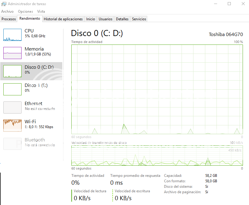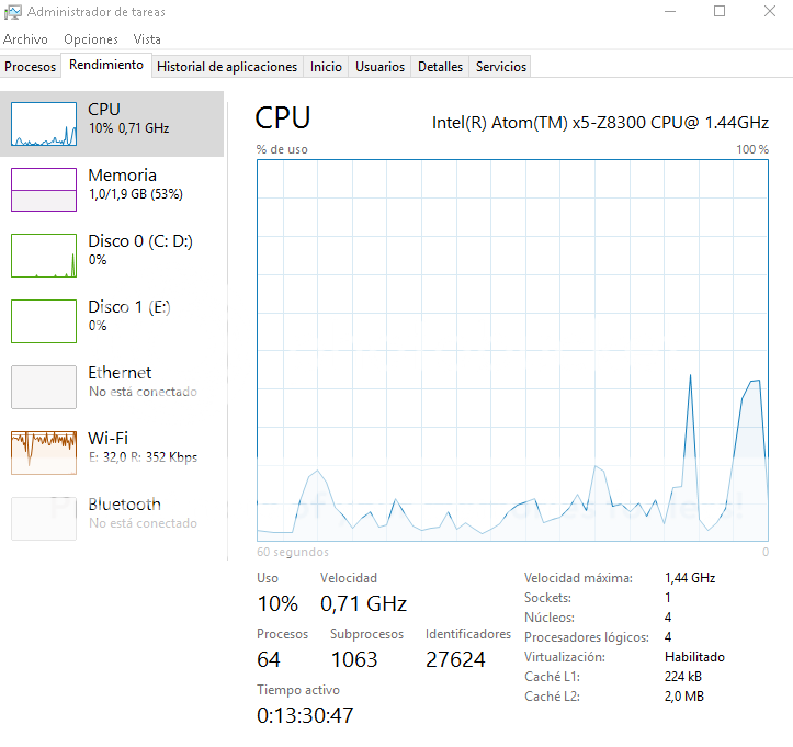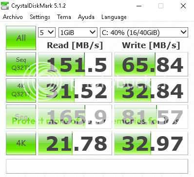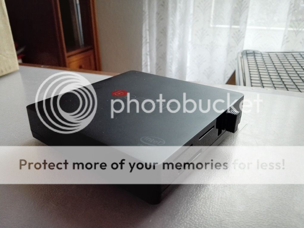 Comprada en igogo.es por poco más de 130 euros (por si a alguien le interesa: http://www.igogo.es/product397831.html), me arrepentí brevemente pues después vi otras más baratas, sin embargo, el rendimiento que tiene este aparato es muy pero que muy bueno (lo he comparado con el rendimiento de la Tablet Chuwi Hi10 que en teoría debería mejor gracias a sus 4GB de RAM, sin embargo, no ha sido así, ya que la experiencia del día a día es bastante más satisfactoria en este aparato). Especificaciones: Marca: Beelink Modelo: BT3 GPU: Intel gráfico HD (Gen7) Sistema: Windows 10 x86 CPU: Intel Atom Cherry Trail x5-Z8300 Cúadruple Núcleo a 1.44Ghz - 1.84Ghz (Turbo) RAM: 2G DDR3 1600Mhz Disco del sistema de Windows (C 25,8 GB libres de 40.0GB, Disco local (D 20.0GB libres de 20.0GBMaxima capacidad de SD: 128GB Color: Negro WI-FI: 802.11 a / b / g / n Bluetooth: Bluetooth 4.0 Fuente de alimentación: Adaptador de carga Ranuras: USB 2.0, SD, USB 3.0, RJ45, Micrófono Jack, DC Power Port, HDMI Idioma: Inglés (se puede instalar Multi-idioma) Certificado: CE Dimensión y peso: Peso del Producto 0,450 kg Peso del paquete 0.820 kg Tamaño del producto (L x W x H) 12 x 12 x 2.4 cm / 4.724 x 4.724 x 0,945 pulgadas Tamaño del paquete (L x W x H) 13.2 x 12.4 x 9 cm / 5.197 x 4.882 x 3.543 pulgadas Contenido del paquete: 1 x BEELINK BT3 Intel NUC PC, 1 x HDMI, 1 x adaptador de corriente, 1 x Manual en Inglés. Se siente compacto y ligero, el material del exterior es plástico, con un acabado mate en la parte superior e inferior, y brillante en los laterales. No sienta mal a la mano pero tampoco tiene materiales premium. Se apoya en 4 patas de goma que asientan bien y poco más. Los accesorios que trae son los justos y necesarios para hacerlo funcionar, un cable HDMI de bastante buena calidad y el adaptador que también parece de bastante buena calidad pues no se calienta en absoluto incluso al pasar el rato. Se podría echar de menos el cable RJ-45 de LAN pero la verdad es que es mejor un precio más barato. Fotografía del dispositivo con su caja y accesorios: El dispositivo en sí: Puertos USB (2x2.0), lector de Tarjeta SD y dos ranuras para ventilación: Botón de encendido (rojo), conector de corriente, USB 3.0, Puerto HDMI, RJ-45 para internet, Jack de auriculares, micrófono, ranuras de ventilación y botón de reset (muy pequeño a la derecha): Se agradece la cantidad de formas de conectividad que posee este aparato, añadiendo a estas, el WiFi de doble banda y el Bluetooth. Se podría pedir más? Sí, por ejemplo un MiniDisplayPort, pero la verdad es que por su precio viene bien cargadito. A pesar de que el dispositivo no tiene refrigeración activa (ventilador), tiene refrigeración pasiva y unas perforaciones en su parte trasera para ayudarle al intercambio de aire. Más adelante se hablara del tema de la refrigeración cuando está siendo usado. Cargador: El adaptador de corriente es de 2A y 12V, por lo que podríamos enchufarlo directamente a la toma de corriente de un mechero del coche sin transformador, por ejemplo, para instalar un equipo con PC/GPS y pantalla en nuestro vehículo. Vamos con la información del equipo: Sistema: Me ha gustado el hecho de que venga el disco particionado en dos, una partición de sistema que lleva Windows y las instalaciones de nuestros programas. Y por otra parte una nada despreciable partición de 20GB para archivos personales. De tal forma que si alguna vez se quiere resetear el dispositivo, no perderíamos aquello almacenado en la partición de 20GB facilitando la tarea. Me parece una opción bastante inteligente, además, de que la distribución 40/20 me parece bastante acertada. De todas formas, para aquellos que quieran instalar más programas, siempre podrán instalarlos en D, en lugar de C y utilizar ambas particiones para realizar instalaciones. Propiedades Windows C: Propiedades User Data D: Administración de los dispositivos: Prueba instantáneas desde el Administrador de Tareas: Rendimiento: - CPU Buena CPU, de Intel, apropiada para el tipo de dispositivo. Hemos comprobado como al darle cera, la CPU hace que el dispositivo se caliente y además bastante. No llega a quemar en ningún caso, pero sí que puede resultar incómodo transportarlo después de usarlo. No es portátil, teléfono o Tablet por lo que este comentario puede considerarse anecdótico siempre y cuando los materiales de fabricación estén estratégicamente elegidos y soporten las temperaturas sin problemas para poder darlo un uso continuado en el tiempo. - Memoria: Me he llevado una sorpresa al ver que la RAM montada es un módulo de 2GB pero es DDR3 a 1600 y no a 1333 como la mayoría de dispositivos análogos, que a pesar de montar módulos de 2 o de 4GB, casi siempre es 1333Mhz, y a la hora de la verdad, se nota. - Disco 0 (C: D ![]() Parece ser una unidad flash de la marca Toshiba, veremos qué tal se comporta más adelante. Un almacenamiento más que suficiente para el uso propuesto para el dispositivo, 64GB en total. Prueba CPU-Z: - CPU: - CACHES: - MAINBOARD: - MEMORY: - GRAPHICS: - BENCH: AIDA64: CRYSTALDISKMARK: Como vemos, el disco no se aproxima ni de lejos al rendimiento que nos daría un SSD, estando más cerca del rendimiento de un HDD, sin embargo, la portabilidad y la resistencia a golpes de la memoria Flash frente a la memoria de HDD hacen que sea una buena elección. Quizás un SSD subiría demasiado el precio del producto, y las dimensiones. WIFI: Este apartado es el que menos me ha gustado del aparato. El alcance y la estabilidad de conexión es bastante mala. No es inutilizable, pero si necesitaremos un router que emita potentemente o una señal muy cercana para poder sacarle el máximo partido a este dispositivo. Tal y como se muestra en la siguiente imagen, en cuanto nos alejamos unos metros del router (15-20, el aparato puede realizar la conexión, sin embargo no es capaz de acceder a internet). Hemos probado con varias redes WiFi y el resultado e