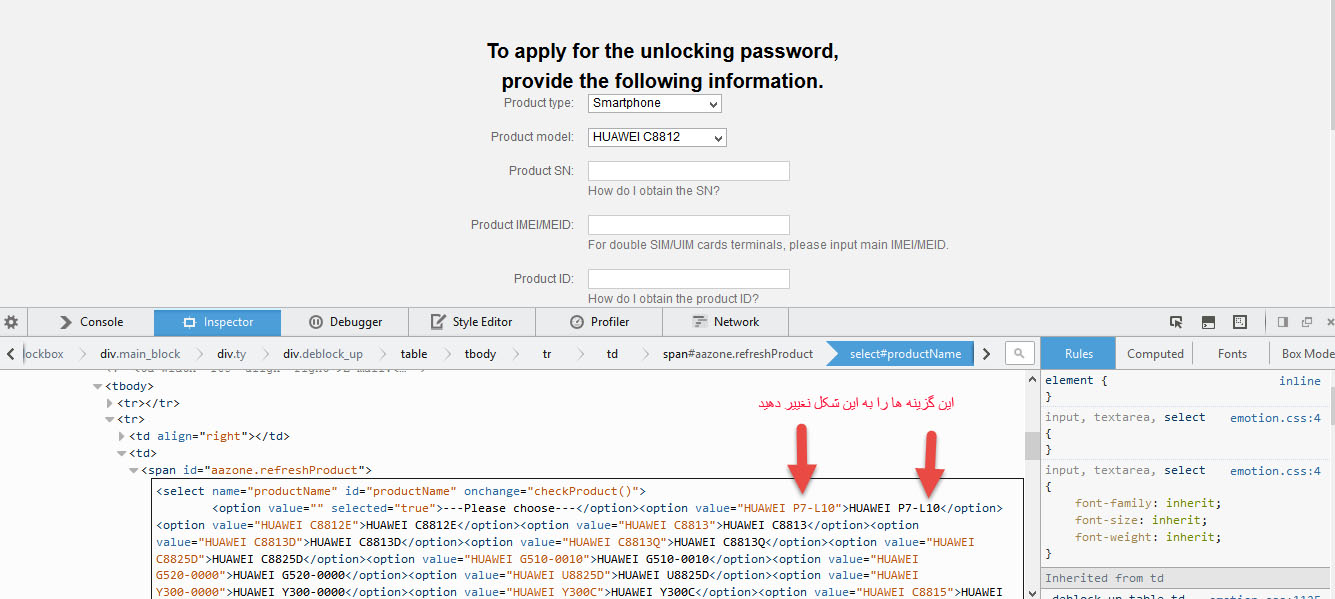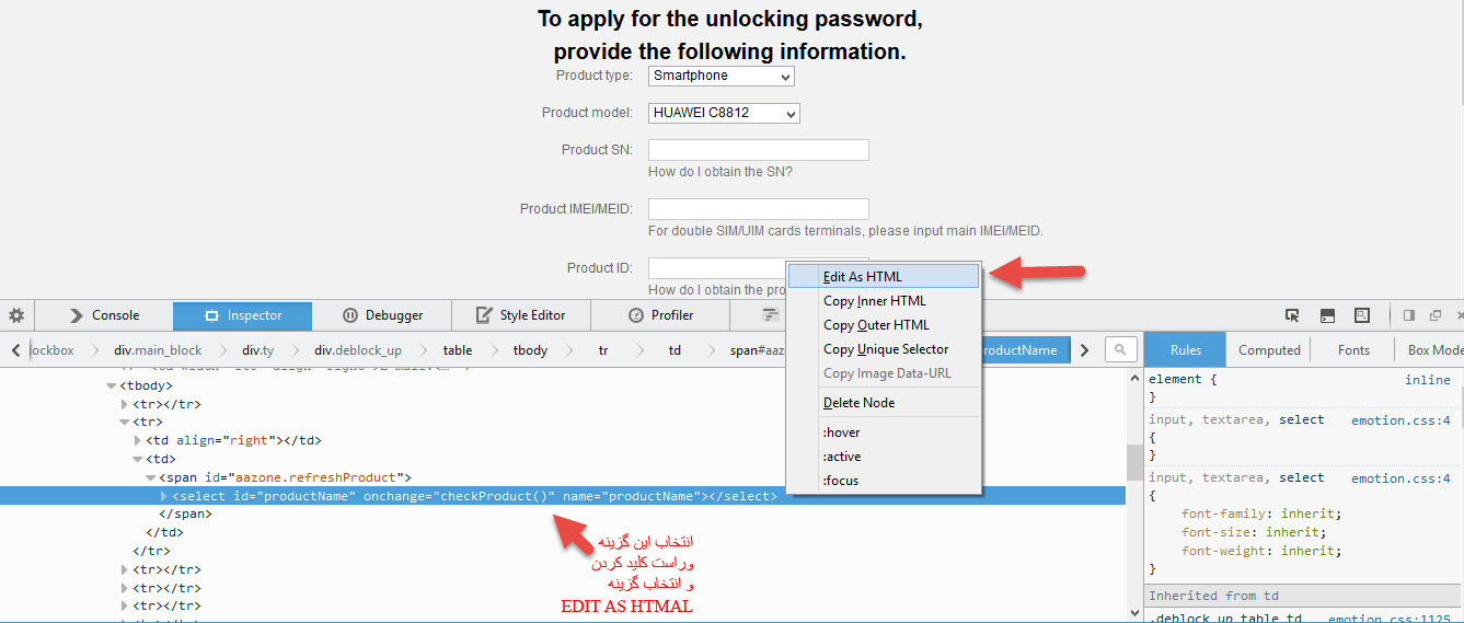 Lo más dificil ya lo hice yo que fue registrarme en una página iraní concretamente esta: http://forum.and-roid.ir/thread185510.html donde está el tutorial y me tuve que registrar para poder ver este enlace: http://en.club.vmall.com/emotiondown...ock&action=pre Antes de comenzar te recomiendo usar google chrome. Tutorial: Tenéis que ir al ultimo enlace que mencioné antes, una vez en él, debes seleccionar en la primera casilla "smartphone". En la segunda casilla como podreis comprobar no sale nuestro modelo, pues bueno seleccionamos uno cualquiera, yo selecciono el primero. ![]() Una vez escogido uno situamos el cursor por encima del modelo seleccionado hacemos click derecho y seleccionamos inspeccionar elemento nos aparecerá el visor html: ![]() Ahora nos situamos en la siguiente linea y hacemos click derecho sobre ella seleccionando edit as HTML ![]() Editamos la linea para ello debemos cambiar el modelo que estaba antes igual que en la siguiente imagen y poner el nuestro (HUAWEI P7-L10): ![]() Y listo ahora veremos que sale ya nuestro modelo y podemos continuar: ![]() Lo siguiente será poner el codigo SN que suele venir debajo del imei en la caja Después ponemos nuestro IMEI Y por último el product ID que lo podremos averiguar marcando en el marcador del telefono el siguiente codigo: *#*#1357946#*#*, el numero que nos da lo ponemos. Introducimos el captcha (los numeros) y le damos al botón rojo, y si habeis puesto todo correcto os deberia dar un codigo de desbloqueo: Una vez hecho todo esto lo siguiente será descargar el ADB toolkit: http://www.mediafire.com/download/5p...db-toolkit.rar Extraemos el zip descargado y dentro de la carpeta lo ejecutamos, se abrirá la consola de comandos de windows (CMD), conectamos el movil con depuracion USB activada al PC reiniciaremos el movil con el comando adb reboot bootloader una vez el movil este en el bootloader nos dirá "phone locked" eso significa que el bootloader esta bloqueado, pues bueno lo desbloquearemos enseguida, sin desconectar el móvil del pc y sin salir del modo bootloader ponemos en la ventana de comandos el siguiente comando: fastboot oem unlock 12234343434 fastboot oem unlock + el número que obtuvimos antes, por ejemplo en vez de ese 12234343434 que puse ponemos el código que obtuvimos en la página anterior, pulsamos enter: ![]() Por ultimo ponemos el siguiente comando para asegurarnos de que lo ha desbloqueado: fastboot oem get-bootinfo ![]() Si todo sale bien deberia aparecer la palabra unlocked tanto en la ventana de comandos tras realizar el ultimo comando como en nuestro dispositivo en rojo: ![]() Bueno espero que os funcione, disculpad si os ha parecido muy lioso, es que es mi primer tuto en esta página y se debe nota bastante ![]() Este método ha sido probado con un P7-L10 con versión b609 de emui 3.0. Saludos. Última edición por julianceed Día 01/02/15 a las 14:17:06 |
