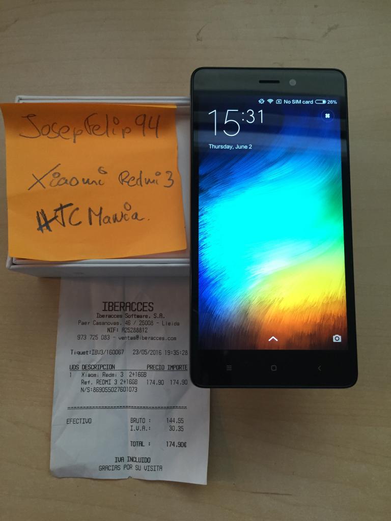 ![]() Sobre el post del foro * Título de la venta: Xiaomi Red mi3 120e!! * ¿Relacionado con smartphones o tablets?: Sí Sobre el producto * Marca: Xiaomi * Modelo: Redmi3 * Precio: 120 * Si vendes un teléfono, ¿es libre o de operadora?: Libre de fábrica * ¿Producto nuevo o de segunda mano?: Nuevo / Desprecintado * ¿Desperfectos?: Esta perfecto desprecintado tiene 1 semana * Estado del producto (de 1 a 10): 9 * Tiempo de uso del producto: 1 dia * ¿Aceptas cambios?: No Sobre el método de pago * Ubicación: Lleida * Método de pago admitido por el vendedor: