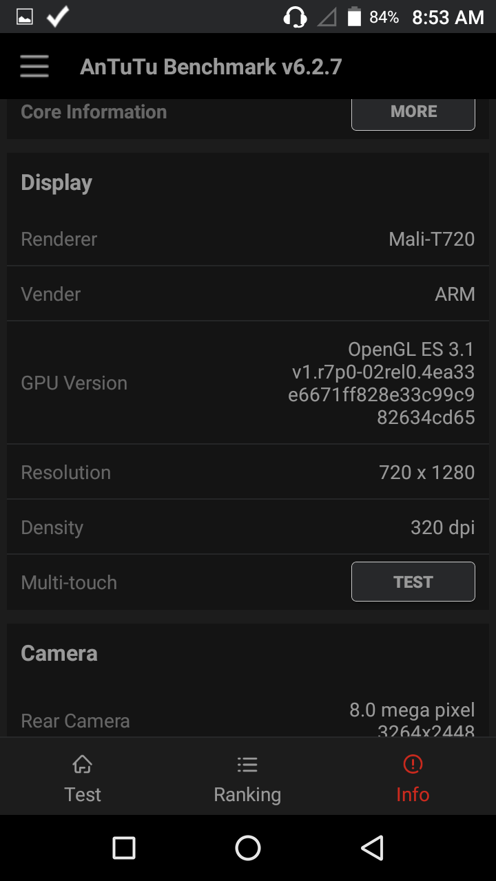 Información desde el propio dispositivoInformación obtenida mediante herramientas de software directamente desde el dispositivo..Para tener una fuente fiable de información del sistema, he obtenido información desde el mismo dispositivo, ya sea desde la misma información que me proporciona el sistema Android (que generalmente es mas bien escueta), como utilizando otros programas que logran sacar mucho mas información, y de forma mas detallada, con lo que nos podemos hacer una idea general del dispositivo en su conjunto. Antutu Benchmark System Info CPU-ZPara quien no conozca estos programas, decir que un benchmark es una herramienta que ejecuta una prueba normalizada que se realiza en un dispositivo. Estas pruebas puntúan (generalmente ponderando varios resultados obtenidos) el desempeño de un dispositivo, de manera tal que el puntaje final puede servir para poder comparar de manera simple y directa el rendimiento general entre varios dispositivos. Existen muchos benchmarks, pero en mis pruebas generalmente utilizo los mas populares. Si tienes alguna sugerencia de un nuevo benchmark, déjame un comentario nombrando el programa específico y la razón, para poder contemplarlo en siguientes reviews. En la práctica, si quieres comparar este dispositivo (del cual estoy comentando en este articulo) con otro que veas por la web, o uno que tu mismo tengas, basta con que encuentres el resultado de alguno de los benchmarks y compararlo directamente con las capturas de pantalla que pongo aquí. Con esto, ya te puedes hacer una idea general de que tal van estas máquinas, comparando sus resultados. Nota acerca de los resultados de los benchmarks Hay que tener en cuenta que estos resultados son meramente referenciales. Es muy probable que si ejecutas estos benchmarks mas de una vez, tendrás mas de un resultado y muchas veces pueden variar de forma sensible. Esto puede suceder por muchos factores (temperatura del dispositivo, carga de memoria mientras se realiza la prueba, conexión a internet, cambios en los sensores como puede ser mientras se mueve el dispositivo, etc, etc). Por esta razón, en muchas ocasiones realizo 3 pruebas de cada benchmark y presento las que mejore puntuación obtiene (por que asumo que es la que mejores condiciones ha tenido para ejecutar dicha prueba) Condiciones de ejecución de los benchmarks Para la ejecución de estos benchmark, las condiciones del dispositivo son: