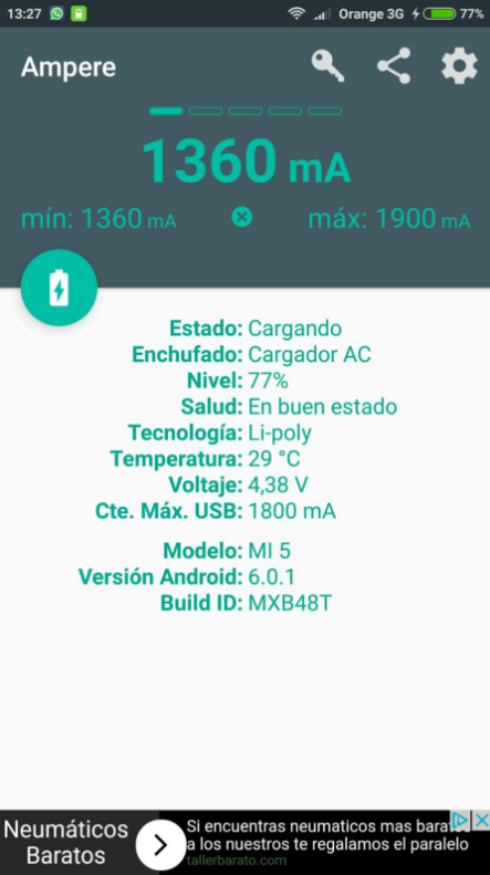 Probé cambiar de cargador pero es igual ... Es como si cargará conectada a la PC (muy lenta) Use "ampere" para ver a qué ritmo se carga y es casi nada ![]()
