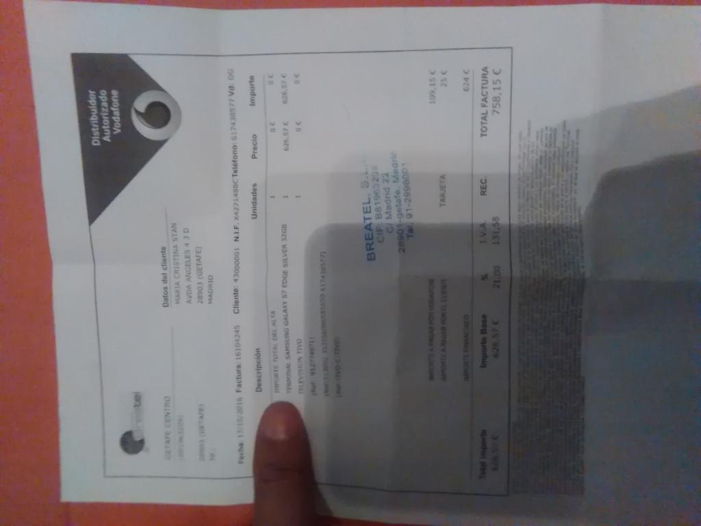 No sé si se ve bien la factura e puesto el dedo por que se ve el IMEI del móvil, la fecha pone 17/10/16