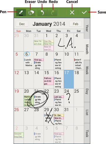 En el note 4 había una opción que te permitía escribir encima del calendario.