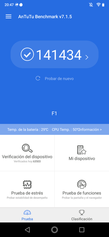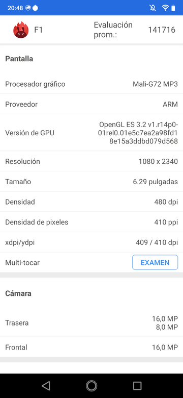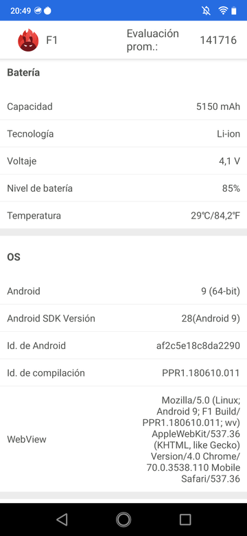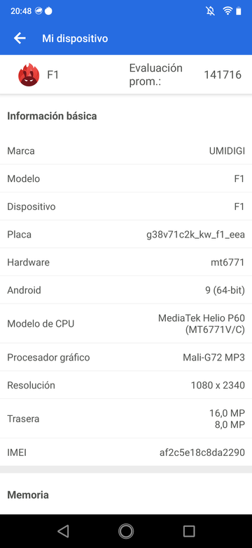 ![]() ·· VÍDEO UNBOXING Y PRIMERAS IMPRESIONES ·· ·· ESPECIFICACIONES ·· - Dimensiones: 156.9 x 74.4 x 8.8 mm. - Peso: 186g. - Pantalla: 6.3 pulgadas en formato 18:9 con notch gota de agua. - Resolución: 1080 x 2340 (FHD+). - Procesador: MT6771 Helio P60. - RAM: 4GB. - Almacenamiento interno: 128GB ampliables con Micro SD. - Batería: 5150mAh con carga rápida Mediatek Pump Express. - Puerto de carga: USB Tipo C - Sistema operativo: Android 9 Pie. - Cámara trasera: Doble cámara de 16MP+8MP F/1.8. - Cámara delantera: 16MP. - Conectividad: WIFI 2.4G/5G. NFC. Bluetooth 4.2. GPS GLONASS. - Reconocimiento facial. - Lector de huellas en la parte trasera. - Soporte OTG. - Dual SIM. - Jack de 3.5mm. ·· UNBOXING ·· El UMIDIGI F1 se presenta en una caja sencilla, de color oscuro, en la que tan sólo destaca el logotipo de la marca en el frontal. ![]() Si le damos la vuelta a la caja encontraremos sus especificaciones principales. ![]() Una vez abrimos la caja nos encontramos una tarjeta de UMIDIGI sobre el terminal. La presentación es simple pero correcta. ![]() ![]() Este es todo el contenido de la caja. ![]() Si nos quedamos con los accesorios y dejamos el móvil a un lado, nos encontramos con un sobre de cartón, el adaptador de corriente y el cable de carga y datos. Se podrían echar en falta unos auriculares o una película de protección de la pantalla, cosas que cada vez vemos menos acompañando a los terminales. ![]() Dentro del sobre encontramos la herramienta para extraer la bandeja de las tarjetas SIM o SIM + SD, y una guia de usuario, con apartado en castellano. ![]() El cable de carga y datos es rojo, destaca bastante y a primera vista parece de buena calidad, tanto el cable en sí como los correspondientes conectores USB y USB tipo C. ![]() El cargador es compatible con la carga rápida de Mediatek denominada Pump Express a 12V y 1.5A. ![]() Por último dentro del apartado del unboxing, el teléfono viene con una funda puesta ya dentro de la caja. Perfecta para protegerlo desde el primer momento. ![]() ![]() ·· ASPECTO FÍSICO ·· Sin duda, uno de los puntos fuertes de este UMIDIGI F1 es su atractivo diseño en el cual destaca el notch en la pantalla con forma de gota de agua, un notch de tamaño muy reducido y, por fin, bien integrado en los terminales de procedencia china. Repasemos su diseño. ![]() ![]() La parte trasera de este terminal es bastante sobria, con acabado metálico, y en la cual tan sólo destacan su sistema de doble cámara y el lector de huellas. ![]() En el marco inferior encontramos el jack de 3.5mm para los auriculares, el puerto de carga y datos USB tipo C y el altavoz principal. ![]() En el marco lateral derecho encontramos el botón de encendido y apagado y la botonera de volumen. Aunque en el teléfono la botonera de volumen está compuesta por un único botón, la funda que se incluye separa claramente el botón de subir y bajar volumen, así que su uso es mucho más intuitivo. ![]() En el marco lateral izquierdo encontramos únicamente la bandeja para las dos tarjetas SIM o para una SIM y una tarjeta Micro SD. ![]() En la parte trasera, abajo, encontramos la serigrafía con el logo de la marca. ![]() En la parte de arriba la protagonista es la doble cámara con el flash entre ambos sensores y la linea roja que la decora. Centrado encontramos el lector de huellas dactilares que, la verdad, sin funda se encuentra bastante mal ya que queda enrasado con la superficie de la parte trasera. Con la funda puesta no tendremos ningún problema. ![]() En el frontal, a parte de la pantalla que ocupa el mismo casi en su totalidad, destaca el notch gota de agua, pequeño y bien integrado que da cabida a la cámara frontal y a los diferentes sensores de luminosidad y proximidad. No cuenta con LED de notificaciones. El altavoz para la llamadas se integra entre el marco y el cristal frontal. ![]() ![]() Os dejo algunas fotos más del terminal desde diferentes ángulos para apreciar correctamente los marcos y todos los detalles de diseño. ![]() ![]() ![]() ![]() ·· SISTEMA ·· Este UMIDIGI F1 cuenta con Android 9 Pie desde fábrica. Desde que lo he recibido, hace aproximadamente una semana, ha recibido dos actualizaciones via OTA de las que no hay disponible mucha información. Sin embargo, la segunda de las actualizaciones ha traído un bug importante al terminal que espero que solucionen pronto en una nueva OTA. Con un launcher que no sea el launcher stock del terminal, no podremos acceder a la multitarea, ya que al presionar el botón para ello utilizando, por ejemplo, Nova Launcher, el launcher por defecto se detendrá de forma inesperada sin completar la acción. Es un error importante, sobre todo para los que nos gusta personalizar el sistema con nuevos iconos y funcionalidades, que ya está reportado en el foro oficial de UMIDIGI y que espero solucionen pronto. El launcher stock tiene el siguiente aspecto. ![]() Y como os comentaba, nada más encenderlo saltó la primera de las actualizaciones. ![]() Las aplicaciones preinstaladas en el UMIDIGI F1 no son muchas, destacando algunos servicios de Google de los que soy usuario y, por tanto, agradezco que ya se incluyan en el sistema. ![]() El panel de notificaciones y ajustes rápidos tiene el siguiente aspecto, con una experiencia stock. ![]() ![]() El menú de ajustes es prácticamente stock, con un par de opciones específicas a las que echaremos un vistazo más adelante. ![]() ![]() Importante el menú para el NFC, característica que no se suele incluir en los terminales chinos y que este UMIDIGI F1 si posée. ![]() ![]() En el submenú dedicado a la pantalla encontramos opciones ya características de este tipo de dispositivos con chips Mediatek, como Miravision, etc. ![]() ![]() En la opción añadida denominada Smart Assistant encontramos los siguientes submenús. ![]() Con la opción Network Manager podremos controlar qué aplicaciones hacen uso de la red WiFi o de datos, por si queremos