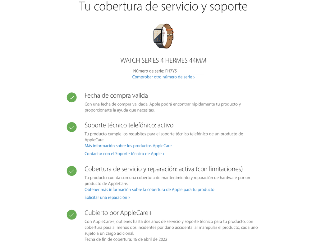 * Descripción general y otros comentarios: Pongo a la venta un impoluto Apple Watch Hermes series 4 44mm lleva activado el apple care plus seguro de rotura incluido con factura y garantía con apple hasta el 16 de abril 2022.