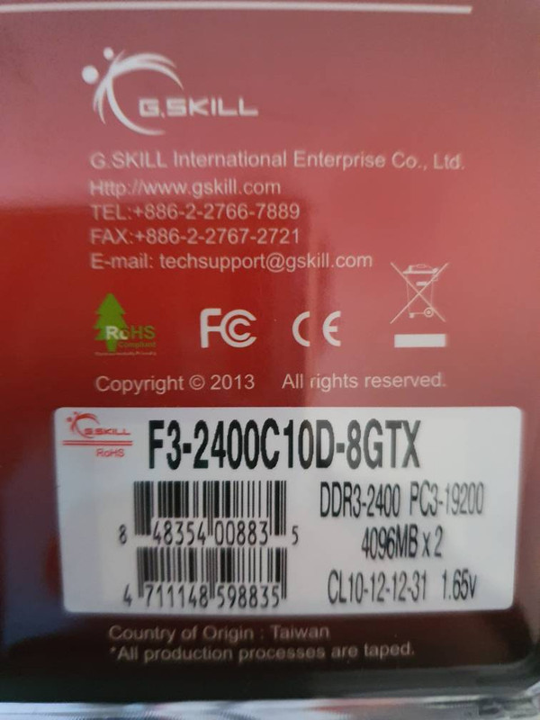 * Sobre el envío: El envio son 7 euros. Ingreso previo en cuenta. * ¿Dispones de factura?: Sí * Fecha de la factura: - * ¿El producto está en garantía?: Sí Otros datos de interés * Descripción general y otros comentarios: Se trata de 2 kit de 2X4 DDR3 2400 CL10. Como la gran mayoría de marcas, tienen garantía de por vida. * Certifico que la descripción aportada es correcta: Sí * Certifico que no estoy vendiendo un producto ilegal o una réplica: Sí * Acepto las normas de la sección de compra y venta de HTCMania: Sí Fotografías reales del material * ![]()