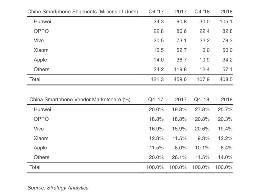 Para confirmar lo que digo de que samsung no vende casi en china solo hay que ver las cifras de marcas mas vendidas, esta es un poco vieja( finales de 2018) pero vamos sirve igualmente para ver las preferencias de compra en china: ![]() Cita: