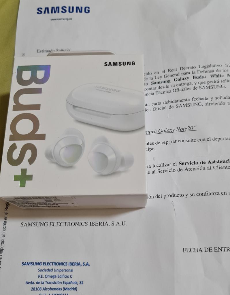 * Sobre el envío: El envío lo hago por mensajería 24 horas y ya está incluido en el precio. * ¿Dispones de factura?: Sí * Fecha de la factura: 1 de Septiembre de 2020 * ¿El producto está en garantía?: Sí Otros datos de interés * Descripción general y otros comentarios: vendo auriculares bluetooth Samsung Galaxy buds plus de color blanco, son nuevos y están precintados, es un regalo de una promoción de Samsung por la compra de un Note 20, adjunto documentación con el número de serie para la garantía de 2 años, lo compré aquí en el foro a un compañero pero al final me he comprado unos Airpods. * Certifico que la descripción aportada es correcta: Sí * Certifico que no estoy vendiendo un producto ilegal o una réplica: Sí * Acepto las normas de la sección de compra y venta de HTCMania: Sí Fotografías reales del material * |