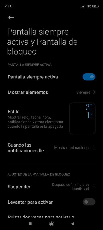Siempre leí que no se podía en pantallas IPS y no es que no se pueda, simplemente es que no es recomendable por el excesivo consumo de batería en teoría. Personalmente encuentro super comodo tener esta opción activada además de que estéticamente se ve genial. Es más, el LG G6 con pantalla IPS trae esa opción de fábrica la que apenas me consumía 1.6% de batería. y el LG G6 solo cuenta con 3300Mhz y aun asi me duraba el día. Ahora, antes de utilizar aplicaciones de terceros, miré que al activar las opciones de desarrollador, en ajustes aparece magicamente la opcion de pantalla siempre activa, curioso. Solo da la opción de activar y desactivar sin nada más. Finalmente no funciona Ahora, hay una actualización apk de la pantalla siempre activa que hace que aparezcan estas opciones, pudiendo elegir reloj, etc. Finalmente luego de personalizar todo, sigue sin funcionar. Para que nos deja la opción de pantalla activa entonces?? xiaomi juega con nuestros sentimientos?? ![]() Probé con una aplicación de terceros "Always on Amoled" y se ve genial, muchas configuraciones, pero hay un problema y creo que es de xiaomi ya que no me pasa solo con esta aplicación. Luego de un tiempo deja de funcionar y tengo que abrir la aplicación para que se active. Esto también me pasa con un mod de ventana de notificaciones y control de volumen. sin opciones de desarrollador ![]() con opciones de desarrollador ![]() y a ustedes que les parece el AOD?? en una pagina de facebook se burlaban de mi por esperar AOD en un celular como el RN9pro