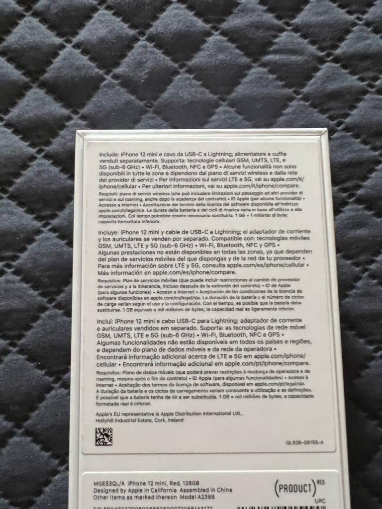* Sobre el envío: Envío incluido por agencia Si se quiere el envío asegurado serian 10€ más No me hago responsable de envíos sin asegurar .. * ¿Dispones de factura?: Sí * Fecha de la factura: Activado Agosto 2022 Factura Amazon España * ¿El producto está en garantía?: Sí Otros datos de interés * Descripción general y otros comentarios: iPhone 12 Mini 128GB RED Nuevo Factura Amazon España .. * Certifico que la descripción aportada es correcta: Sí * Certifico que no estoy vendiendo un producto ilegal o una réplica: Sí * Acepto las normas de la sección de compra y venta de HTCMania: Sí Fotografías reales del material * Última edición por lokeriol Día 27/09/22 a las 22:43:52. |