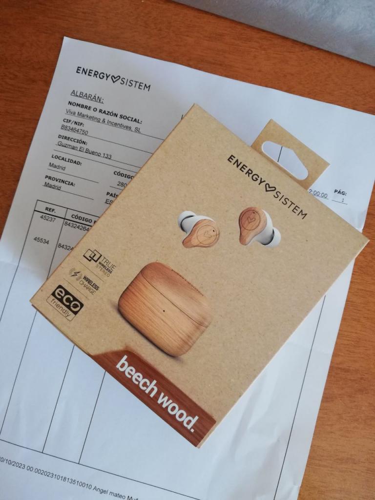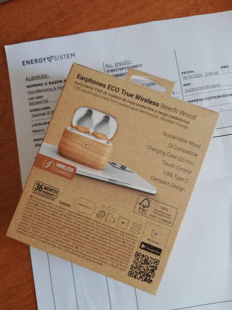 * Sobre el envío: como se acuerde * ¿Dispones de factura?: Sí * Fecha de la factura: 18/oct/23 * ¿El producto está en garantía?: Sí Otros datos de interés * Descripción general y otros comentarios: Auriculares ecológicos construidos en un cuerpo de madera de haya natural con diseño ergonómico y control táctil para facilitar el manejo con acabado más duradero que ofrece un sonido de mayor calidad. ✅Asistente de voz (Google, Siri): Sí ✅Alcance: 20m ✅Autononía - Uso normal: 8 h ✅Tiempo de carga: 1 h ✅Manos libres: Sí ✅control táctil ✅ligeros y cómodos ✅estuche de carga de madera ✅Compatibilidad: Mac / PC Windows / Smartphone / TV ✅ Factura 18/octubre/23 ✅PRECINTADO * Certifico que la descripción aportada es correcta: Sí * Certifico que no estoy vendiendo un producto ilegal o una réplica: Sí * Acepto las normas de la sección de compra y venta de HTCMania: Sí Fotografías reales del material * Última edición por angelmateo Día 30/10/23 a las 06:22:29 |