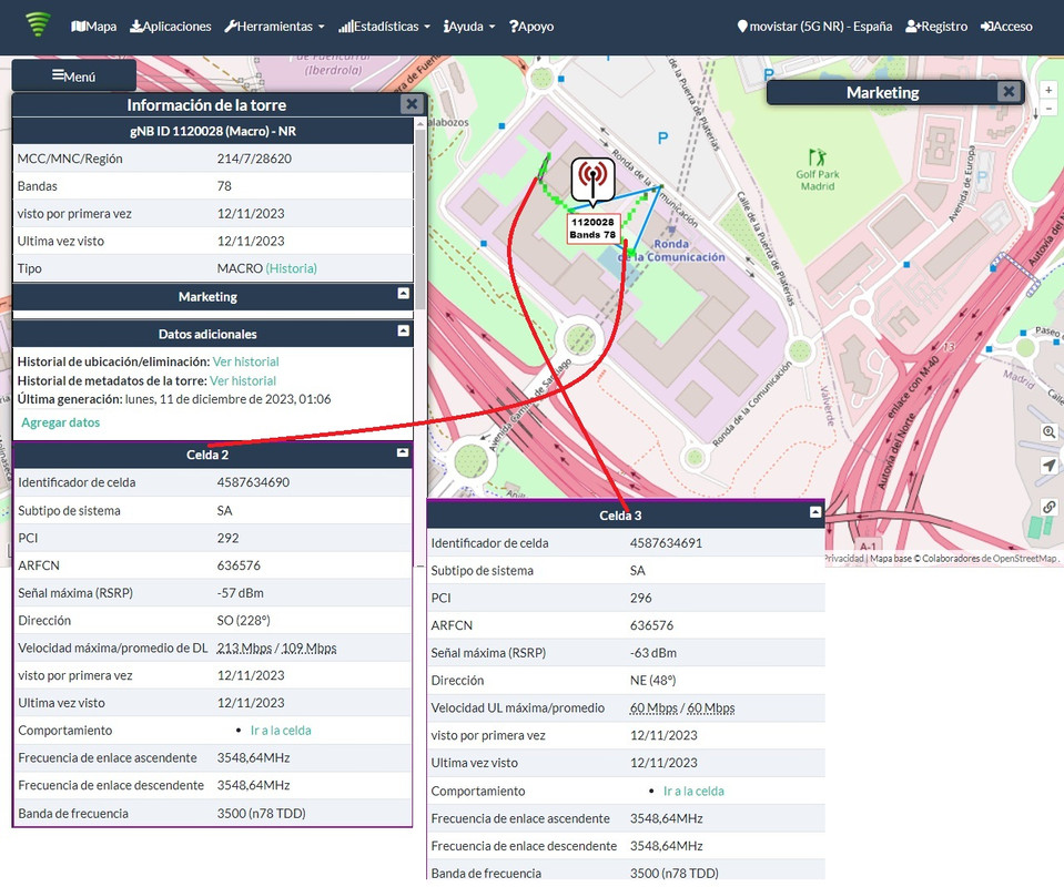 He seguido investigando un poco más acerca de las Antenas instaladas con tecnología 5G SA y me he centrado en Madrid ciudad.