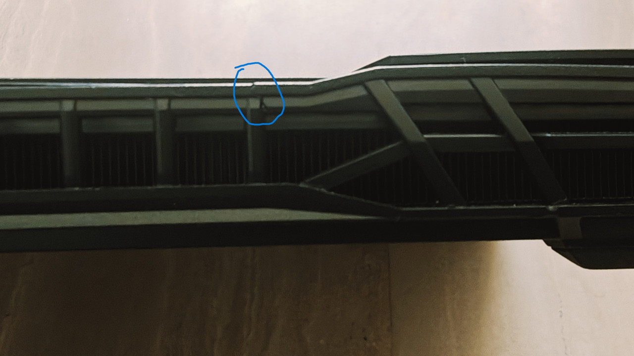 En la parte trasera tiene una pequeña rotura de la rejilla de plastico que no afecta para nada.