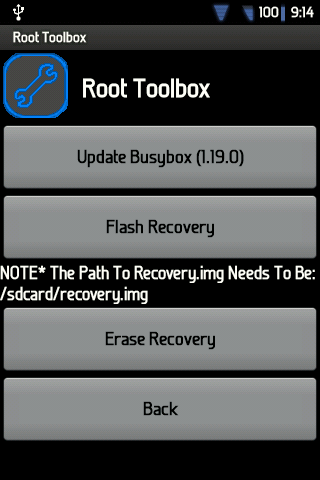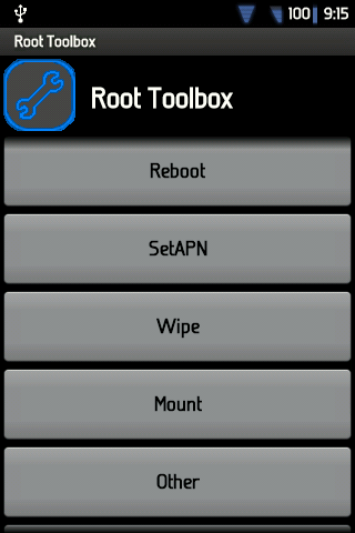Root Toolbox 2.4 Requisitos: Android 1.6 +Características de trabajo: Reinicie opciones SetAPN Limpie Delvik Limpie las estadísticas de la batería Montar de nuevo sistema Flash Recovery Z4root Opciones Fijar permisos Lanzamiento de menú oculto Sim Configuración (Activador del mercado) Fijar Enlaces Mercado Opciones de montaje Actualizar Busybox Borrar la recuperación CM7 Temas Usted necesita configurar SetAPN dependiendo el país en donde vive y su operador local getprop gsm.sim.operator.numeric getprop gsm.operator.numeric getprop gsm.sim.operator.iso países getprop gsm.operator.iso países getprop gsm.sim.operator.alpha getprop gsm.operator.alpha / Sistema / etc / APN-conf.xml ![]() ![]() Instrucciones Espejo http://www.fileserve.com/file/jsT5z2M Exención de responsabilidad: Esta aplicación está disponible para su uso bajo su propio riesgo y sin garantía de ningún tipo.