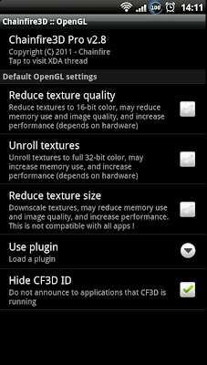 Si @fozzy crees que no pinta nada este post borralo, pero creo que a la gente le sera útil y ya que me quede con las ganas de hacer el tutorial en la sección de juegos pues lo pongo aqui para que la gente que tiene el sensation sepa que puede jugar a otros juegos y de paso los aporto a este mismo post un todo en uno he de decir que fui el primero en poner Chainfire3D en el foro: Atención: es recomendable tener un backup con el recovery por si acaso aunque yo no he tenido problemas en 4 de las veces que lo he instalado en el sensation y en el galaxy solo 1 vez. Introducción: Chainfire3D es una herramienta que permite modificar la información de la gpu y asi permite jugar a juegos no compatibles con tu telefono utilizando pluggins como el de tegra 2 o el de power vr y el de qualcomm que a nosotros no nos sirve porque tenemos un qualcomm empezamos!1º) descarga la aplicación: (gratuita) Download Market link (mobile): market://details?id=eu.chainfire.cf3d Market link (desktop): https://market.android.com/details?id=eu.chainfire.cf3d 2º) Plugins: http://www.megaupload.com/?d=OJWDIE3L Hay que descomprimirlo en la sd y quedaran 3 archivos zip no los descomprimais 3º)Instalación Una vez descargada la aplicacion del market la iniciáis os pedirá permiso root de dais que si y listo después tienes que instalar el driver (tarda unos 10sec) y se reiniciara solo (en caso de que se quede en negro mas de 30sec quitar la batería y encender el teléfono el driver estará instalado de todas maneras. ![]() Una vez instalado el driver hay que instalar los plugins inicias la aplicación y abrir install Plugins / shaders y la app los busca automáticamente y cuando finalice debes pulsar encima de cada uno de ellos para instalarlos. A hora solo hay que configurar la app al gusto de cada: 4º) Configurar los plugins: En el menú de la aplicación selecciona "Default OpenGL Settings" y te saldra esta ventana: ![]() y despues hay que darle a "use plugin" ![]() Y seleccionas el plugin que deseas para cada juego por ejemplo para uno de tegra2 seleccionar el de nvidia y para otro de power vr lo mismo y para volver al del sensation none PD: El de qualcomm lógicamente no tenéis que selecionarlo Ya esta listo!