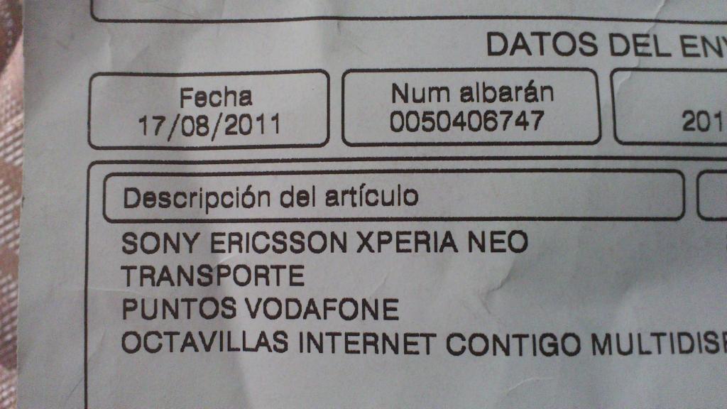 vendo sony ericsson xperia neo, tarjeta sd 8 gigas, sin desprecintar.