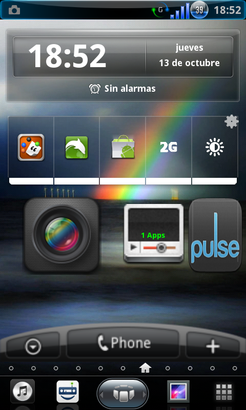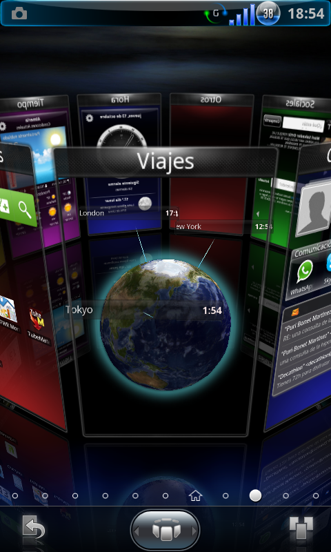 Bueno he cambiado ahora el lanzador que utilizo es el sbp 3D shell, una auténtica pasada visual, aunque poco configurable, pero todo tiene remedio, por ejemplo utilizando el widgetsoid he realizado el resto de iconos de la primera pantalla, semi dock tipo sense, excepto el reloj, que corresponde al lanzador.