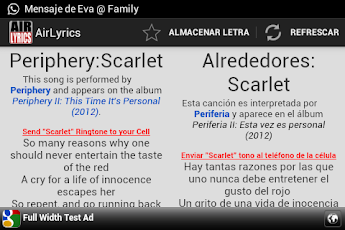Esta es mi primera aplicación, llamada AirLyrics. Probadla y comentadme (aquí y en la App Store) que tal os va. Podéis descargarla de Google Play. ![]() Traducción de letras! Nueva versión 1.6! Video inicial de uso básico Aplicación ligera y potente de búsqueda de letras para Android AirLyrics busca automáticamente las letras de la canción que está reproduciendo tu dispositivo Android, y muestra una notificación. Si la aplicación está visible (abierta), muestra directamente las letras. No pierdas tiempo tecleando, AirLyrics encuentra las letras por ti. Además, AirLyrics es capaz de realizar traducciones simultáneas de letras a tu idioma. ¡Ahora podrás entender que canta tu artista extranjero favorito o mejorar tu vocabulario! CARACTERÍSTICAS ✓ Búsqueda de letras automáticas mientras escuchas música con un reproductor favorito. ✓NUEVO Traducción de letras automáticamente a tu idioma. Desliza el dedo hacia la izquierda en la vista de las letras(sólo para Android 3.0+) y abre el panel de traducción. Puedes abrir este panel mediante el menú también. ✓ Visualiza tus letras favoritas sin conexión. ✓ Dos temas disponibles, light y dark. ✓ Caché con las últimas letras visualizadas las últimas letras, configurable en tamaño, para ahorrar consumo de datos. ✓ Enorme base de datos de letras. ✓ Consumo de datos bajo, sólo 40kb por canción visualizada si no es letra favorita o está en caché. ✓ Aplicación ligera. ✓ Compatible con versiones de Android 2.2 en adelante. Acerca de las traducciones: Ten cuidado si tienes un plan de datos con pocos megas. La traducción de letras consume entorno a 100-150 kb por traducción visualizada (similar a cualquier página web relativamente compleja). En cualquier caso, AirLyrics almacena las últimas traducciones visualizadas en caché, y puedes almacenarlas como favoritas, al igual que cualquier otra letra. Además, AirLyrics sólo descarga la traducción si el panel de traducción está visible. AirLyrics es totalmente compatible con estos reproductores: ★Sin necesidad de configuración★ - Samsung Stock Player - Sony Ericsson /Sony Xperia Player - HTC Stock Player - Poweramp - JRTMusic (aka Android Music Player) - Google Music - ³ (aka Cubed) - Amazon Music Player - Astro Player Nova - doubleTwist - Musixmatch - Rocket Player - TTPod - Miui Music Player - Player Pro - Folder Player - GoneMAD Music Player - Music Folder Player - RockBox for Android - Omich Player - Cute AMP - Media Plus - MortPlayerMusic - bTunes - XenoAmp - Apollo Music Player 1.0 - XiiaLive Radio - Now Playing Free - Real Player ★Activando "scrobbling" en la configuración del reproductor de música (No es necesario tener instalado LastFM/ScrobbleDroid/Simple LastFm Scrobble)★ - Mixzing - Vanilla Music - RockOn - DeadBeef - JukeFox - Music Player Pro - Music Pro - HikiPlayer - jetAudio Basic/Plus - Nexmusic - N7 Music Player - NGR Player - Shuttle - TinyPlayer El proveedor de letras es LyricWiki, un sitio colaborativo con cerca de 1800K letras. Si AirLyrics no encuentra las letras, puedes ayudar a LyricWiki añadiéndolas. ¡Colabora con ellos!! http://lyrics.wikia.com SCREENSHOTS Tablet Layout Smathpone Layout ♫ Revisiones en blogs ♫ Español http://appandroidblog.com/2013/06/02...s-la-escuchas Inglés http://www.androidguys.com/2013/05/0...w-about-may-9 http://getandroidstuff.com/download-...s-android-app http://www.droblog.com/2013/05/airlyrics-apk.html http://technobb.com/android/airlyric...p-for-android Portugués http://www.baixaclub.com/android/airlyrics.html http://www.baixaki.com.br/android/do.../airlyrics.htm Italiano http://www.yourlifeupdated.net/andro...do-su-android Eslovaco http://www.mojandroid.sk/2013/05/04/...cia-airlyrics ♫ Visita mi canal de Youtube ♫ evelopment" target="_blank">https://www.youtube.com/Skekto<img s..." />evelopment Última edición por skektox Día 20/06/13 a las 19:37:29. Razón: nueva version |