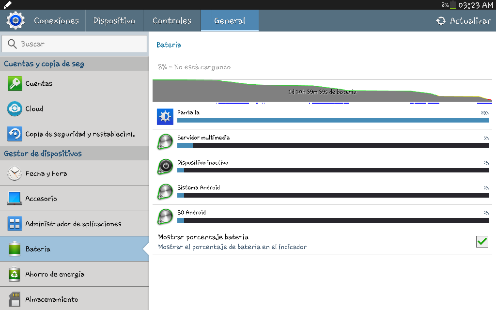 Ya estaba faltando el hilo de la bateria. Me estaba preocupando algo la duracion de la batria de los primeros dias, la he dejado descargarse hasta 0%, carga total y hoy los resultados ya prometen acercarse a los de la note 2012. Dejo captura de la bateria con el uso de pantalla desde hoy a la mañana. Animaos con vuestros resultados.