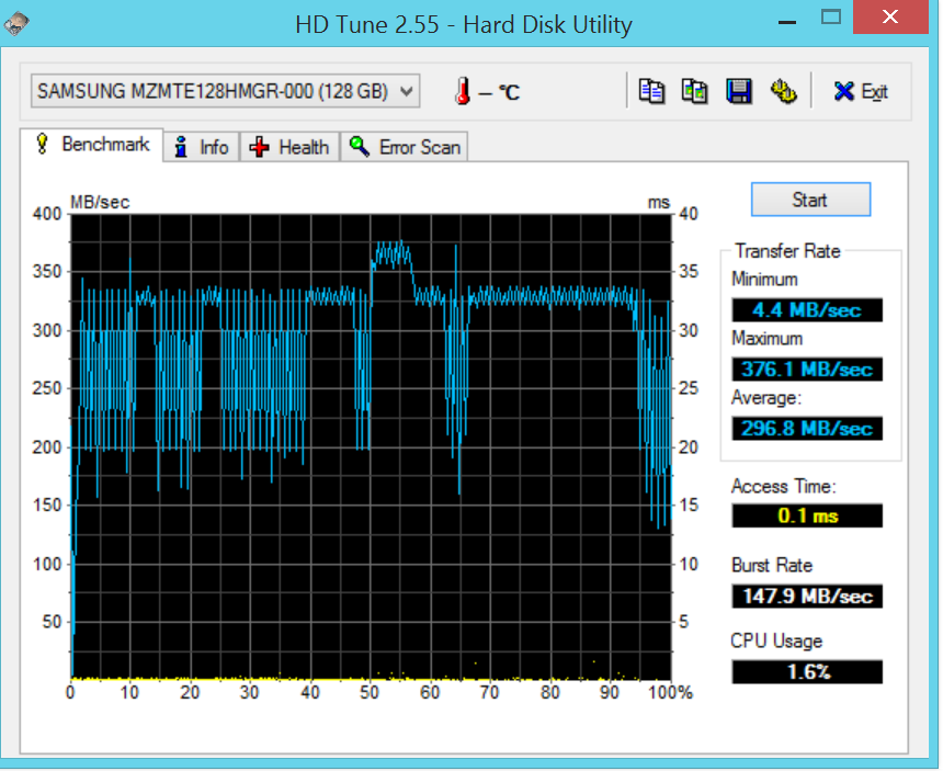 Instalé el HDTune para hacer las pruebas de rigor al disco SSD, que es de Samsung.