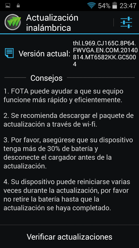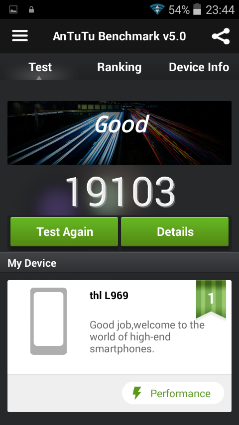Muchos smartphones han salio desde entonces, y entre ellos, este ThL L969. Un smartphone que si bien no destaca por sus características técnicas hoy en día, si que tiene varios aspectos que lo diferencian de los demás como puede ser el 4G, su precio, Android Kit Kat (4.4), actualizaciones vía OTA y una batería bastante sugerente para este teléfono. Nos ha llegado con una funda de las llamadas "flip cover", la cual bloquea y desbloquea al cerrar o abrir, además de que al cerrar se cambia y se pone un reloj adaptado al hueco de la "flip". Además, este vendedor, al que le hemos querido dar una oportunidad, se ha portado estupendamente y ha incluido una tarjeta Samsung de 16 Gb de clase 10, con un adaptador a SD. Ésta nos ha llegado un par de días antes en un paquete a parte. Increíble la velocidad, sin exagerar en unos 8 días estaba en casa usando el envío de NL post. ![]() La presentación está en la media. Una caja simple con el logotipo de la marca y en su interior el móvil sobre un soporte de cartón bajo el cual se encuentran los accesorios (cargador (Europeo), cable USB, protector de pantalla (trae ya uno colocado), auriculares, manual y tarjeta de garantía. ![]() Abrimos la tapa trasera y nos encontramos con que solo tiene un slot para la SIM. Han eliminado las posibilidades del dual sim. Colocamos la batería y en unos instantes lo tenemos encendido. ![]() Mención especial se merece la batería. Recordando de nuevo al ThL W100, me viene a la memoria lo poco que aguantaba su batería con solo 1800 mAh. En este va bastante bien equipada con 2700 mAh y más con las características que tiene. Se irá viendo que tal se comporta, pero la verdad es que promete. Y digo que promete, ya que su resolución de pantalla es de solo 854 x 480 (WGA) lo que a parte de consumir menos, hace que sea más fluido. La pantalla se ve realmente bien, que no engañe la resolución pues la pantalla es estupenda. Unos brillos muy muy correctos, colores vivos y no se nota esa escasez de resolución en ningún momento. También sus ángulos de visión son muy buenos ya que equipa tecnlogía IPS. Su procesador ya es bastante conocido, es el sustituto del tragón 6589 de mediatek. Se trata del 6582 que a parte de sustituir la gráfica powervr sgx544 por la mali 400 (mucho más eficiente) aumenta la velocidad de reloj en 100 mHz. Su funcionamiento es bastante fluido. Cualquiera que haya tenido móviles con este procesador sabe como se comportan. Aunque actualmente estámos ya cegados por los 8 núcleos actuales, este, teniendo 4 es más que suficiente para el 90 % de las personas. Se ha comprobado varios juegos como el hangry shark o dead trigguer y no se ha notado nada de LAG en ningún momento. Probamos antutu, requisito imprescindible en cualquier review, y nos sorprende con unos más que suficientes 19.103 que seguro aumentarán al colocarle la tarjeta sd, ya que en el momento de la prueba no la tenía instalada. Pasamos al punto más nefasto de este terminal; Su cámara. Si, anuncia 13 Mpx traseros y 2 Mpx frontales. Pero la verdad es que no lo hemos visto por ningún lado. Hemos tenido que mirar varias veces si no era una confusión en los números. pero no, en todos los lugares viene anunciado igual. Su flash, es bastante poco potente, puedes pasarte minutos mirándolo directamente que no llega a ser tan molesto como para dejar de hacerlo (Para que os hagáis una idea) Pero si es verdad que no todo iba a ser oro en este modelo de ThL. No lo he comparado con otro terminal, pues no sería justo. Sin más, ahí van unas capturas. Se han permitido poder dotar a este terminal de 8Gb de memoria interna, que sin ser la panacea, muchísimo mejor que los 4 Gb a los que acostumbran a colocarles a este tipo de terminales. Además, con la tarjeta de regalo, tenémos bastante memoria para instalar multitud de apps. Otro de los aspectos destacados de este terminal es la inclusión de Android Kit Kat, concretamente 4.4.2. Raro de ver en los terminales con MTK aunque según parece, cada vez más se van a ir actualizando a este versión. Además incluye sistema de actualizaciones via OTA, no la hemos probado pues indica que ya está actualizado. Pero dudo que tenga que dar algún error. El teléfono nos ha llegado con una versión rooteada y la rom multilenguaje con casi una traducción perfecta. Incluye varias aplicaciones "no-stock" como un market alternativo. Pero debería de ser sencillo eliminarlo. Muchos descartan un teléfono móvil simplemente por no tener led de notificaciones. Pero hay que decir que hemos probado a instalar del market "led test" y ha lucido una pequeña luz en la esquina izquierda de color rojo. No se ha podido conseguir que luzca en otro color. Los botones capacitivos, como en casi todos los modelos de Lenovo, no son retroiluminados, vienen en un tono plateado sin más. Al menos para mi, no es una desventaja. De hecho en el redmi note lo tengo apagado. (Que feo queda a mi parecer esos botones capactivos en rojo) Pasamos a hablar de un aspecto muy importante en este terminal. Las bandas. Por supuesto que incluye 3G, pero además sumamos el 4G que augura un futuro en nuestras redes. ThL lo ha vuelto a hacer. Si, hablo de la falta de la banda 900. Para mi no es un problema. Donde vivo he tenido varios sin esa banda y ha funcionado perfectamente y no vivo en ciudad, pero eso no es una opinión generalizada. En el caso del 4G (LTE) tiene falta de la futura banda 800. Pero incluye la 1800 y la 2600. Quiero decir, la banda 800 no a a sustituir a las otras dos, si no que va a complementarlas. Por lo cual su funcionamiento debe de ser correcto. GPS ----> probando y a falta de actualizar Sin duda su diseño es precioso. Con un grosor muy pequeño, un bisel de imitación a acero pulido y la parte trasera con una superficiE muy buena para tener una gran sujección hacen que no solo tenga un diseño estupendo, también lo hacen muy muy manejable; Bastante lejos del Xiaomi Note que poseo actu