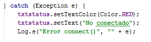 La excepción es ese (Exception e) en el catch pone un Log que escriba el e.toString