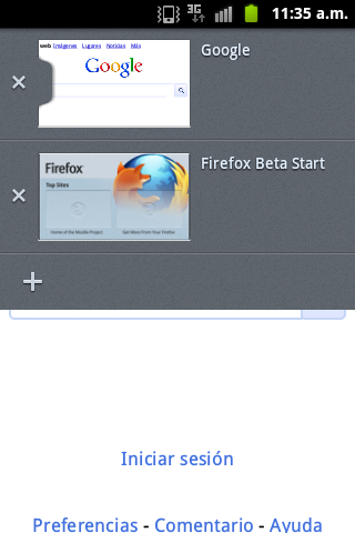 http://ftp.mozilla.org/pub/mozilla.o...android-armv6 la versión más reciente en español: fennec 14.0.2 (no estoy seguro que sea para armv6) http://ftp.mozilla.org/pub/mozilla.o...android/es-ES Última edición por sampipsicotic Día 10/08/12 a las 13:09:03 |