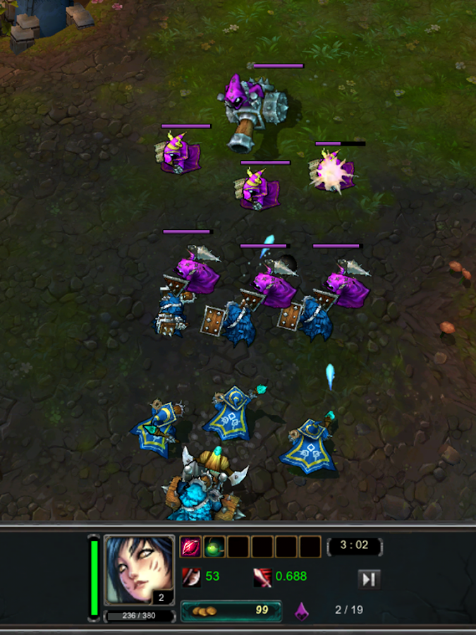 Explico un poco el juego: hay unos minions que se atacan entre sí, bajándose entre ellos la vida, la cosa es que al darle click mates tu al minion y así llevarte el oro, para mas tarde, hacerles mas daño. No tiene más, luego la conexión online tenía pensado por socket