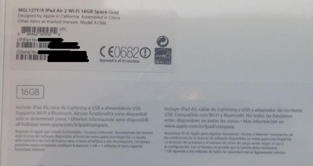 * Modelo: Ipad Air 2 16Gb wifi