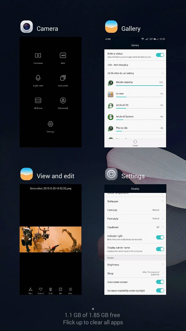Tengo la verzion 521 instalada.entiendo que el boton pAra ver las aplicaciones que se estan ejecutando es el cuadrado de la parte de abajo. Al pulsarle salen dichas aplicaciones. Bien. He leido por ahi que una de las mejoras de lollipop es que al sacar dichas aplicaciones estas salen con unas aanimaciones muy vistosas pero en mi telefono salen ccomo salian en kitkat, es decir unas a continuacion de otras y sin ningun tipo de animacion. Tengo h60-l04. Y actualice sobre la version anterior sin hacer ningun tipo de limpieza. A vosotros os pasa tambien? |