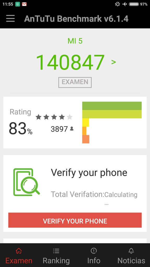 Hice varias pruebas mas y hay mucha diferencia del mas bajo al mas alto . Y se repite uno similar que será como el mas exacto. version rom: GLOBAL ESTABLE 8. 1.2.0(MAAMIDI) MI5 PRO 128 gigas 4 ram |