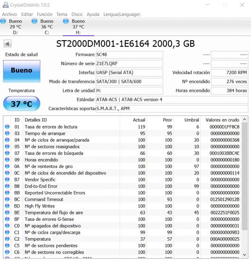 * Descripción general y otros comentarios: Disco duro externo de 2 TB (7200 rpm) USB 3.0 en prefecto estado. Adjunto captura del tiempo/uso del mismo.