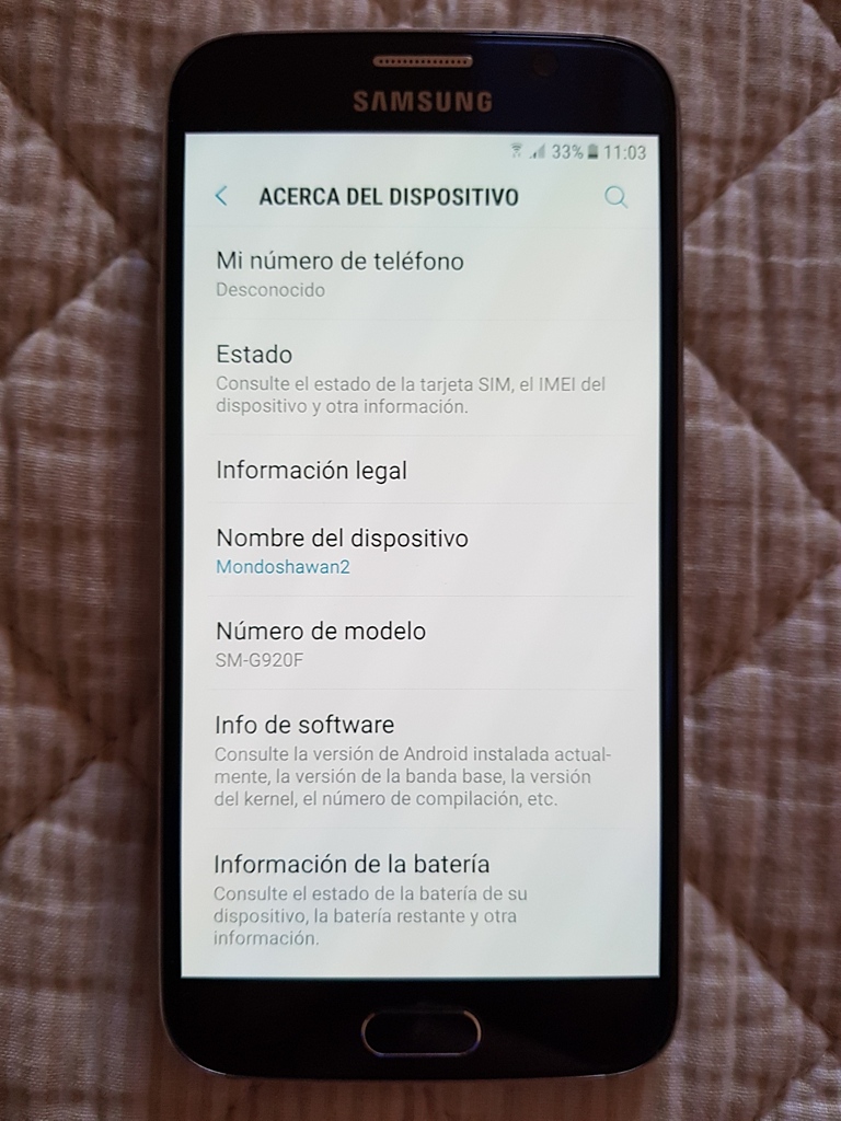 * Descripción general y otros comentarios: Samsung Galaxy S6 con uso en buen estado. Batería cambiada hace unos días. Se incluye cargador inalámbrico Ugreen y muchas fundas.