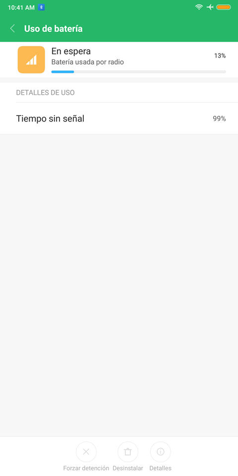 A mi me pasa lo mismo, pero en mi caso en "Tiempo sin señal" lógicamente me marca 0%, ya que siempre estoy conectado a Wifi y datos, pero vamos, idénticos porcentajes de consumo del dichoso "En espera"...