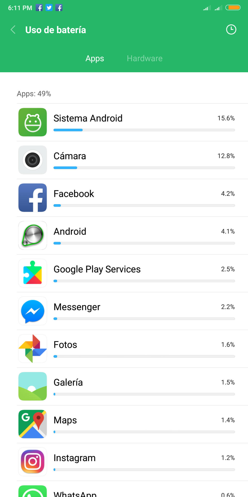 Me gustaría ver foto de la gráfica de consumo de batería de las otras aplicaciones.