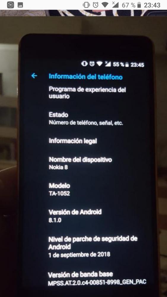 * Sobre el envío: Asm , correos , mrw * ¿Dispones de factura?: Sí * Fecha de la factura: 18!2/2018 eglobal * ¿El producto está en garantía?: Sí Otros datos de interés * Descripción general y otros comentarios: Vendo el nokia 8 porque busco el nokia 7 plus por tamaño de pantalla y bateria pues juego muchisimo Incluye caja , cargador original y adaptador , 3 fundas * Certifico que la descripción aportada es correcta: Sí * Certifico que no estoy vendiendo un producto ilegal o una réplica: Sí * Acepto las normas de la sección de compra y venta de HTCMania: Sí Fotografías reales del material * Última edición por supera3 Día 23/10/18 a las 06:55:43 |