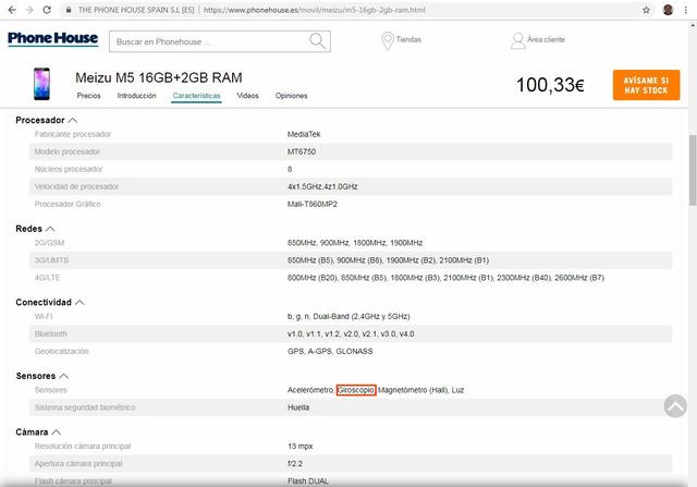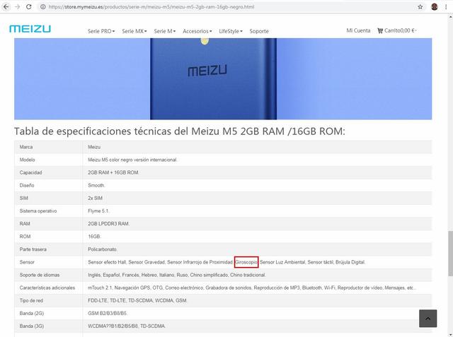 Desde el SAT de meizu me indican que el dispositivo M5 no tiene giroscopio. No se si es broma o se estan quedando conmigo directamente...