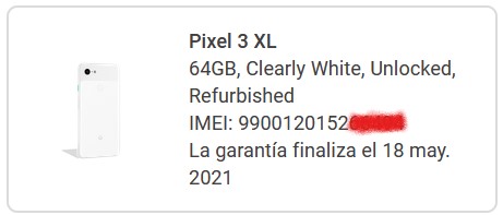 * Sobre el envío: Ingreso previo. El envío son 7 euros por mensajería 24 horas * ¿Dispones de factura?: No * Fecha de la factura: - * ¿El producto está en garantía?: Sí Otros datos de interés * Descripción general y otros comentarios: Móvil recién llegado de un reemplazo por parte de Google. Impoluto con sus plásticos, solo lo he encendido para ver que funciona y comprobar el IMEI. No incluye auriculares ni adaptador USB-Jack. Si, el adaptador USB OTG. Por supuesto su cable y cargador originales. Embalaje original. Garantia con Google por IMEI hasta el 18 de Mayo del 2021. * Certifico que la descripción aportada es correcta: Sí * Certifico que no estoy vendiendo un producto ilegal o una réplica: Sí * Acepto las normas de la sección de compra y venta de HTCMania: Sí Fotografías reales del material * ![]() ![]() ![]() ![]() ![]() ![]() Última edición por mholdlp Día 28/08/20 a las 19:44:56. |