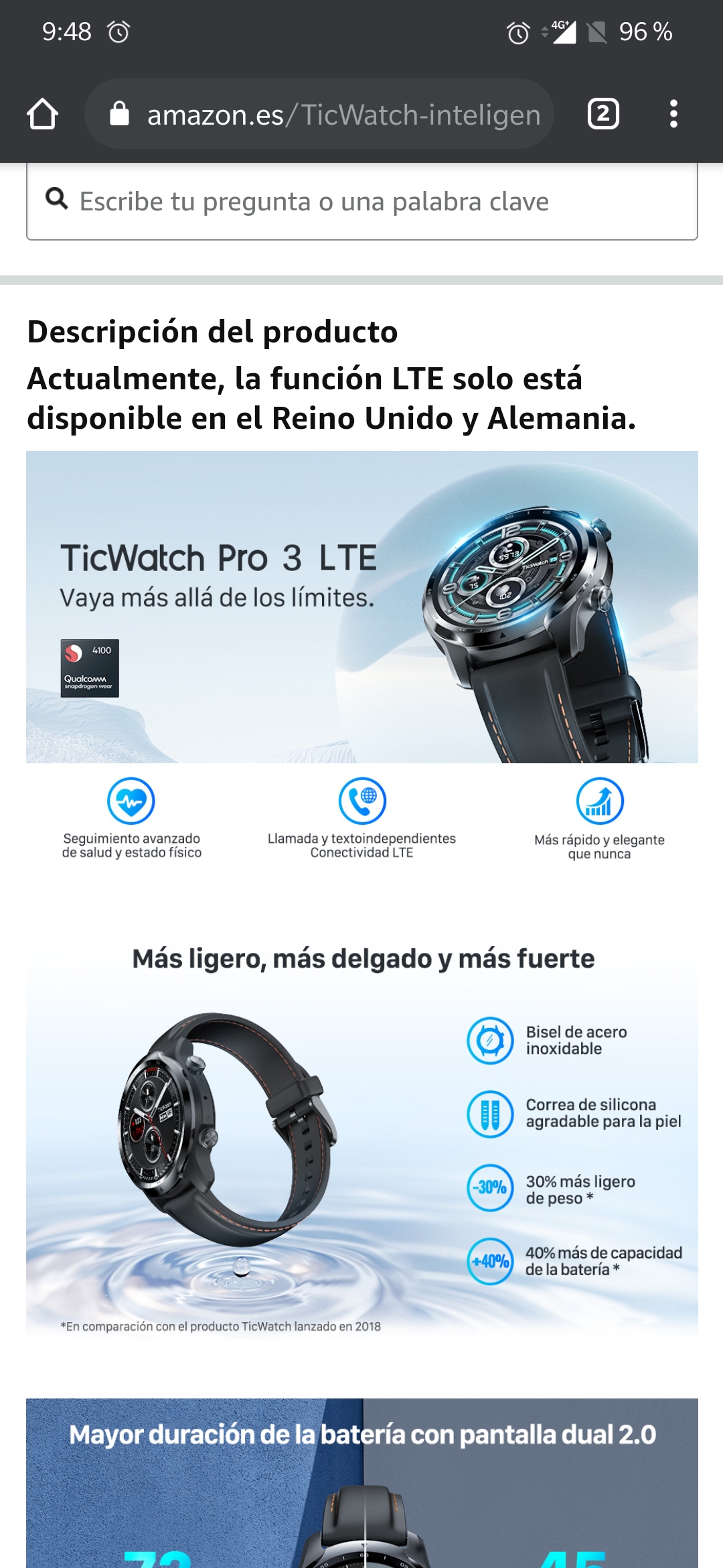 En la web oficial de mobvoi España no se vende, en las alemanas e inglesas si. Tampoco se vende en Vodafone. Y en Amazon España sale q la venta pero en las características específica que solo es compatible en esos dos países. Habrá que esperar a que sea compatible aquí. ![]() ![]() Paso con pro de 2020 |