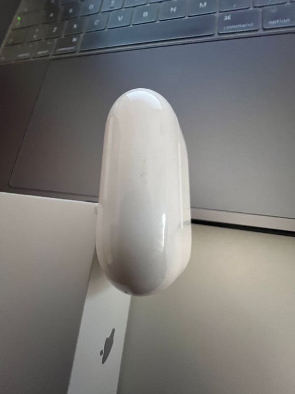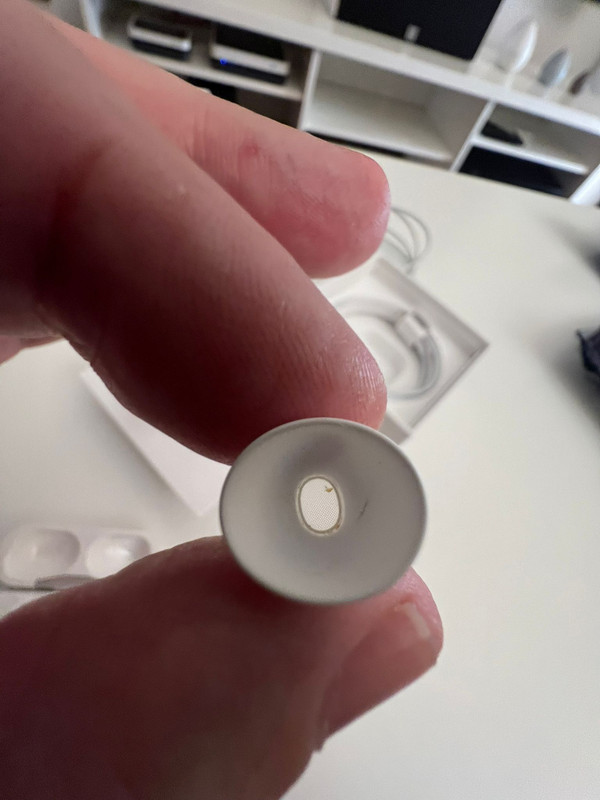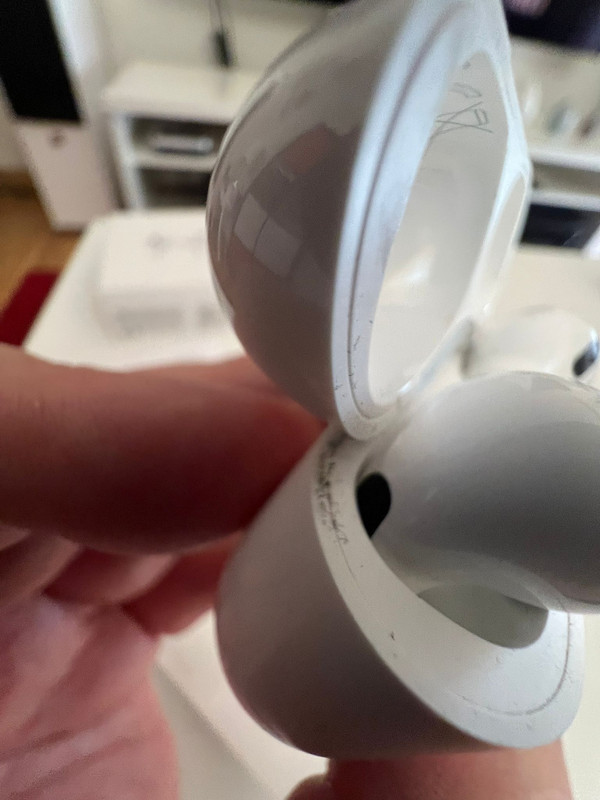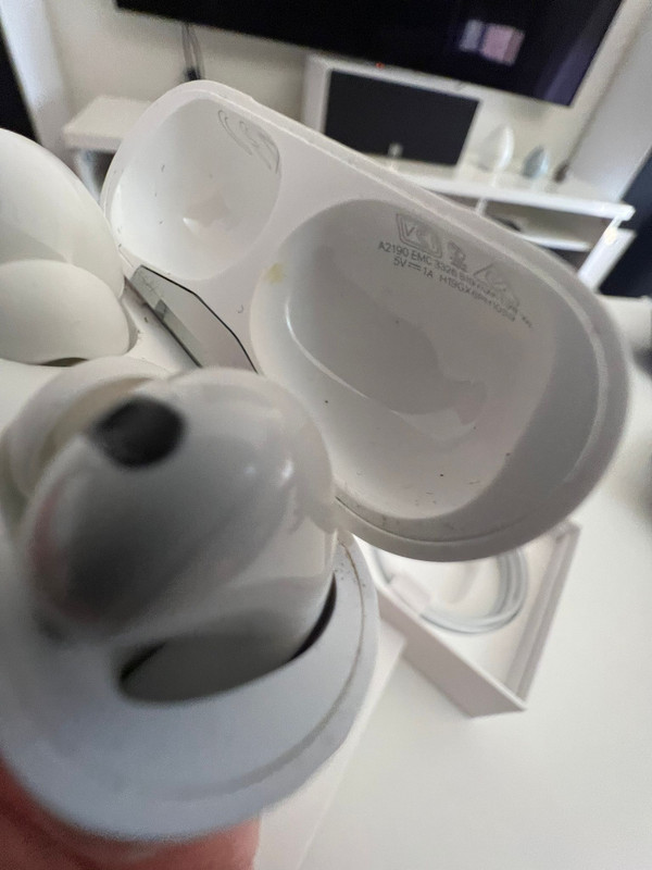 Aquí dejo unas fotos de unos auriculares que dice ser usados 15 días. La caja de los airpods por ser de un material liso sin contraste, no pude sacar más fotos, pero estaba muy sobada.