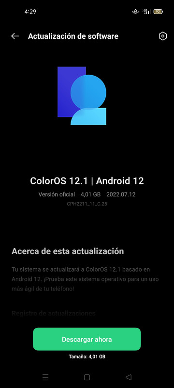 Recibido Android 12 hoy, con fecha de salida del día 12/07 (Estamos a día 13), con parche de junio y versión CPH2211_11_C.25, con un peso de 4,01GB. Una vez llevado las copias de seguridad oportunas, instalada, restauración de fábrica para evitar problemas y configurada, bastante contento. Ya que he ganado con respecto Android 11, aún más fluidez de la que ya tenía y un mayor desempeño y estabilidad.