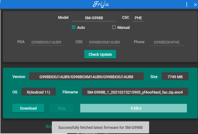 [DISCLAIMER] No me hago responsable de posibles fallos en el teléfono. Si ejecutas esta guía tiene que ser bajo tu responsablidad. Lee atentamente todos los puntos. Realiza un backup de tu telefono periodicamente y antes de cualquier cambio Atención: Actualizar de esta manera de forma erronea puede eliminar todos tus datos. [Stock ROMs] - Dónde puedo encontrar el último FW de Stock para mi S21U? Puedes consultar el último FW disponible desde https://www.sammobile.com/samsung/ga...1-ultra/specs- Cómo puedo saber cual es mi CSC? - Cómo puedo descargar la última Stock ROM para el S21U? [Cómo actualizar el firmware de tu S21U] IMPORTANTE, antes de continuar HAZ UNA COPIA DE SEGURIDAD DE TU S21U EN EL PC Por ejemplo traves de la herramienta de Samsung Smart Switch Vamos con la actualización!! 1 - Descargar Odin 2 - Descargar e instalar los controladores USB de Samsung. Android USB Driver for Windows 3 - Descomprimir en una carpeta el archivo descargado mediente Frija 4 - Ahora necesitamos habilitar las opciones de desarrollador, la depuración de USB y realizar el desbloqueo OEM en Galaxy S21.