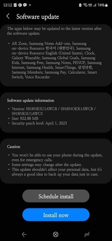 ACTUALIZACIÓN IMPORTANTE LANZADA PARA GALAXY S23, MEJORA LA CÁMARA * .tizenhelp.com Como se prometió a principios de este mes, Samsung ahora está lanzando una importante actualización de software para la serie Galaxy S23 . El objetivo principal del software es mejorar el rendimiento de la cámara y la Galería de Galaxy S23, S23+ y S23 Ultra. En el pasado, muchos usuarios se quejaron de la cámara y otras funciones, por lo que Samsung ha intentado mejorarlas todas. La nueva versión de firmware S9**NKSU1AWC8 se ha aplicado a estos dispositivos de la serie S23 y tiene un tamaño de 922 MB. A continuación se muestra el registro de cambios y los detalles de los principales cambios de la actualización, que viene con el parche de seguridad de abril. La actualización se está implementando en Corea del Sur y pronto se lanzará en otras regiones. Todas estas mejoras y correcciones de la cámara se lanzarán pronto en otros países. de sammobile.com Sin embargo, podrían venir como parte de la actualización de abril de 2023 ya que ya nos estamos acercando a finales de marzo. Samsung ha mejorado la velocidad y la precisión del enfoque automático, junto con la velocidad de las aplicaciones Cámara y Galería. Samsung también ha mejorado la nitidez de la cámara ultraancha en situaciones de poca luz. La empresa también ha mejorado el rendimiento de OIS y los problemas de bandas. También resolvió el problema de la borrosidad en algunos modos de cámara.