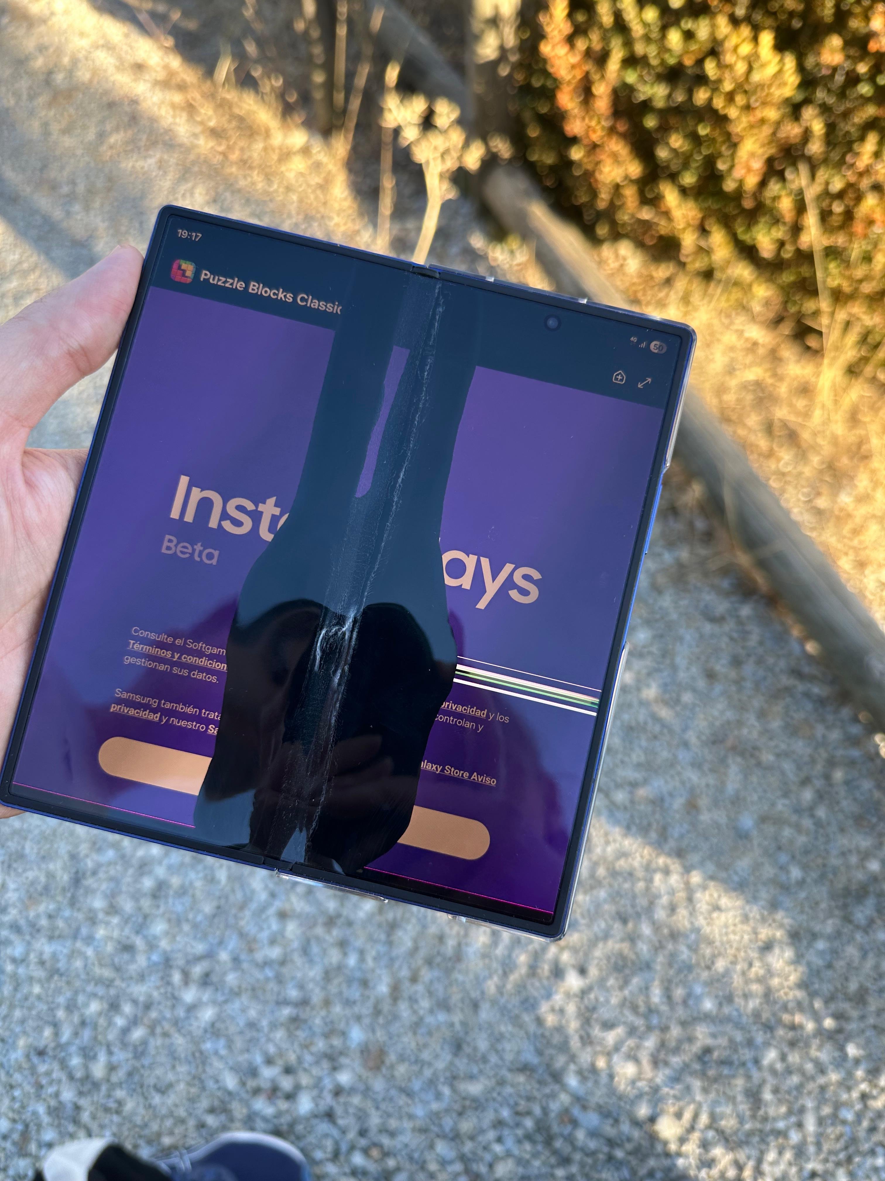 Se me ha caído desde una altura inferior a la del bolsillo mientras me agachaba a poner el collar al perro. Se ve que ha pegado en la bisagra y aunque parecía no tener daños lo abro y la pantalla interior está destrozada. Ahora mismo me pilla de vacaciones, la semana que viene daré parte al seguro. Los que estéis usando la funda original ponedle una buena aunque sean más feas porque mira... ¿Que experiencia tenéis con el seguro de Samsung? ¿Me pondrán pegas? ¿Me arreglan este móvil o me dan otro?