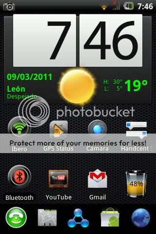 Trae instalado el ADW launcher, le instale el Launcher Pro y va más fluida. http://www.htcmania.com/showthread.php?t=142721 Unas capturitas ![]() Launcher Pro / ADW Launcher ![]() Saludos. Última edición por Narias Día 21/03/11 a las 23:16:31. |
